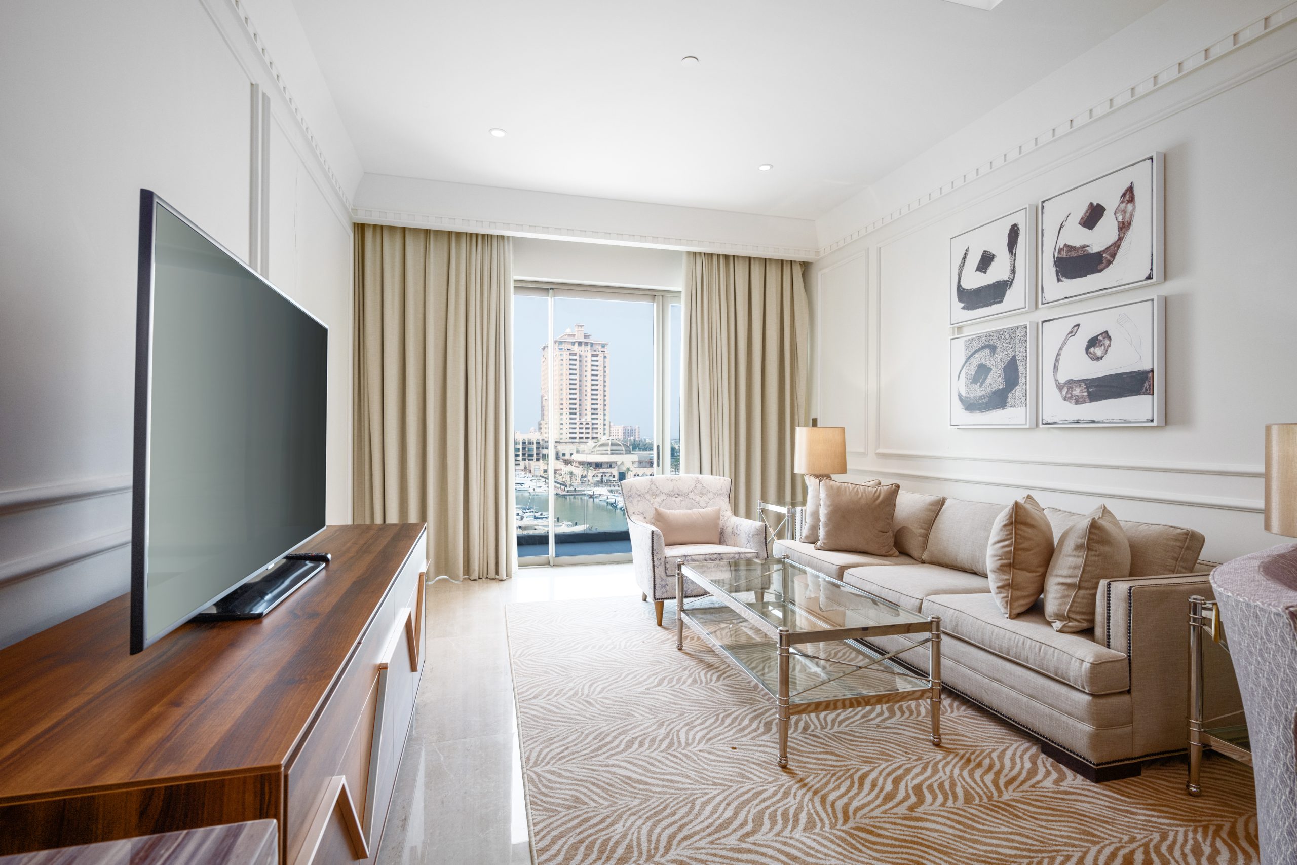 Qatar Sotheby’s International Realty proudly offers this beautifully appointed, fully furnished two-bedroom branded residence, ideally situated within the distinguished St. Regis Marsa Arabia Island at The Pearl-Qatar.